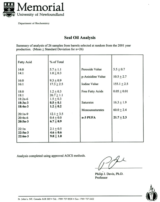 One of the best assessments of this problem is that of Dr. A. Simopoulos. She reports long chain polyunsaturated fatty acids 300-400 mg per day as a desirable intake. This conclusion from a NATO Advanced Workshop on Dietary n-3 and n-6 Fatty Acids appears to be the currently acceptable figures. The conclusion is that up to 2 to 4 g per day of seal oil is in fact a reasonable intake of Omega-3 long-chain fatty acids. In the seal oil the proportions of all three fatty acids are, as shown, very close to what the blood normally provides to all body organs.